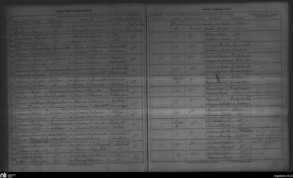 Arklow; County of Wexford, Wicklow; Archdiocese of Dublin. Marriages, Feb. 1866 to May 1866