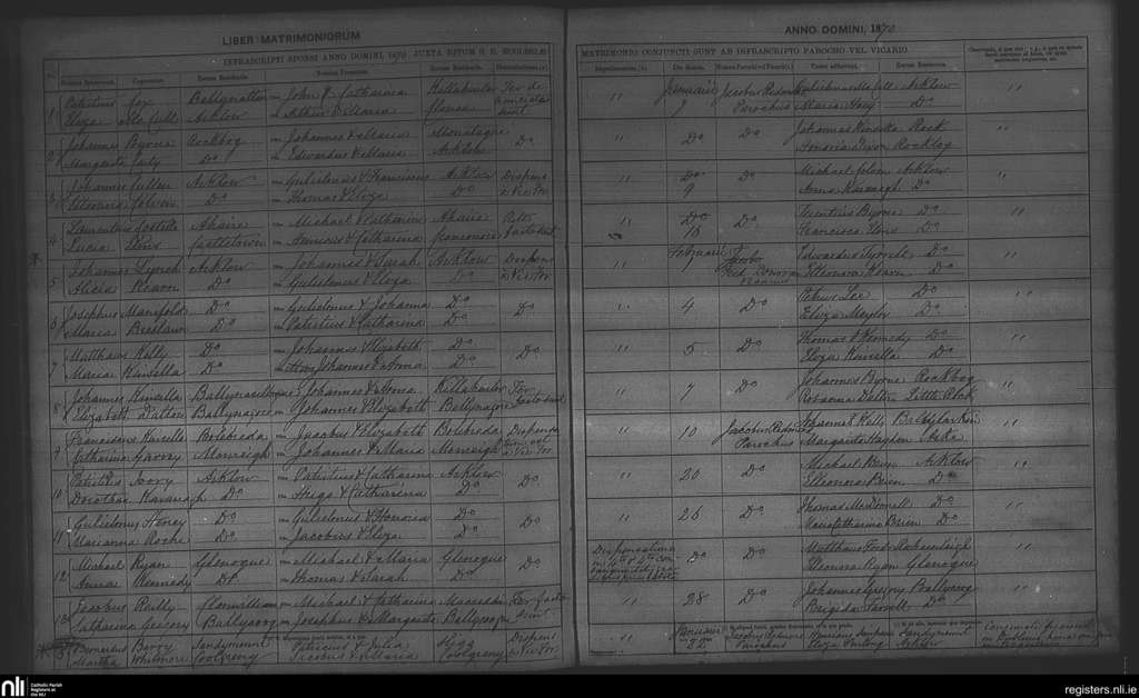 Arklow; County of Wexford, Wicklow; Archdiocese of Dublin. Marriages, Jan. 1870 to Feb. 1870
