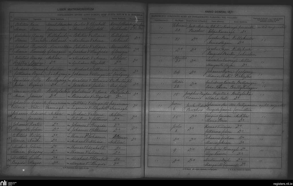 Arklow; County of Wexford, Wicklow; Archdiocese of Dublin. Marriages, Feb. 1871 to July 1871