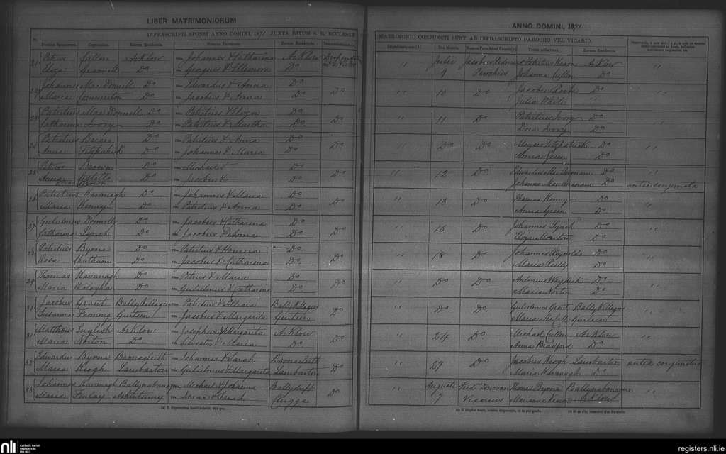 Arklow; County of Wexford, Wicklow; Archdiocese of Dublin. Marriages, July 1871 to Aug. 1871
