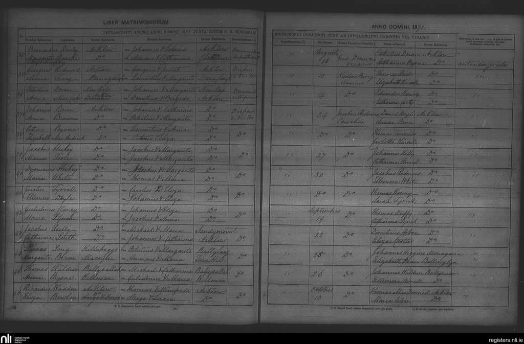 Arklow; County of Wexford, Wicklow; Archdiocese of Dublin. Marriages, Aug. 1871 to Oct. 1871