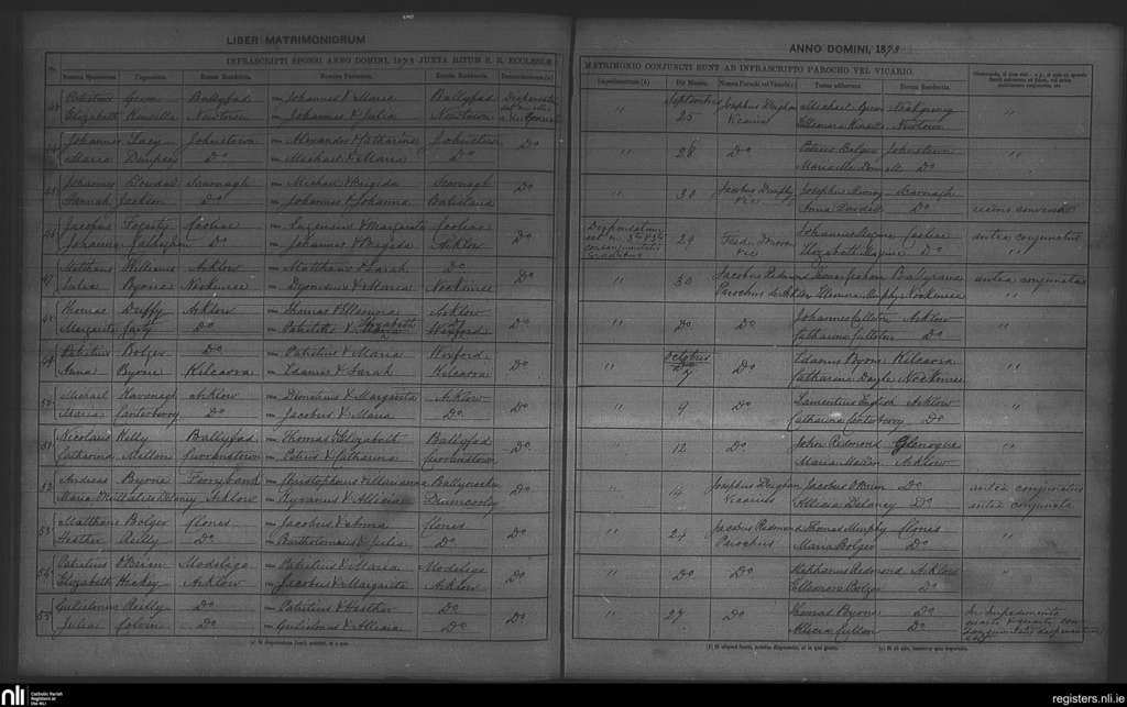 Arklow; County of Wexford, Wicklow; Archdiocese of Dublin. Marriages, Sep. 1873 to Oct. 1873