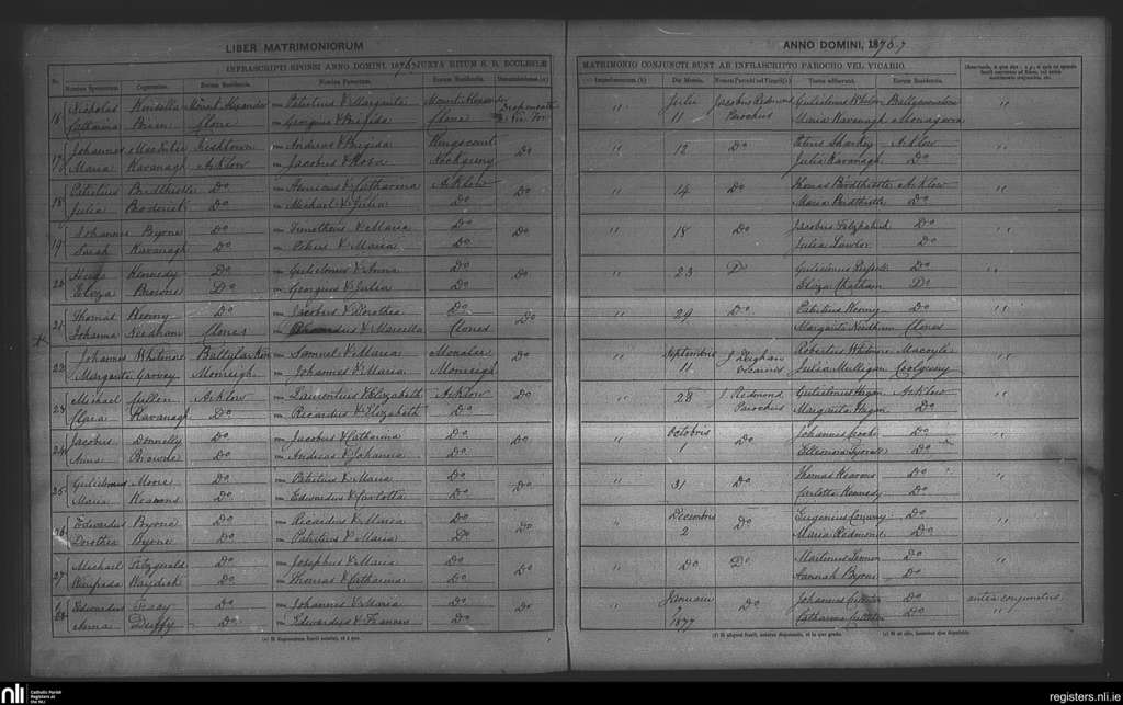 Arklow; County of Wexford, Wicklow; Archdiocese of Dublin. Marriages, July 1876 to Jan. 1877