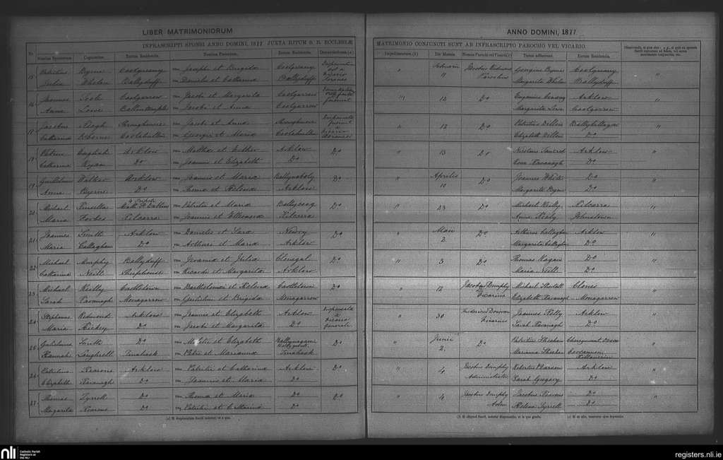 Arklow; County of Wexford, Wicklow; Archdiocese of Dublin. Marriages, Feb. 1877 to June 1877