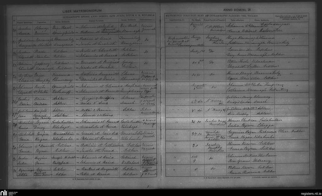 Arklow; County of Wexford, Wicklow; Archdiocese of Dublin. Marriages, June 1880 to Oct. 1880