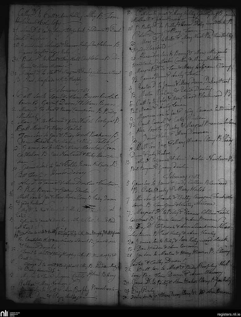 Athy; County of Kildare, Laois; Archdiocese of Dublin. Baptisms, Jan. 1780 to Feb. 1781
