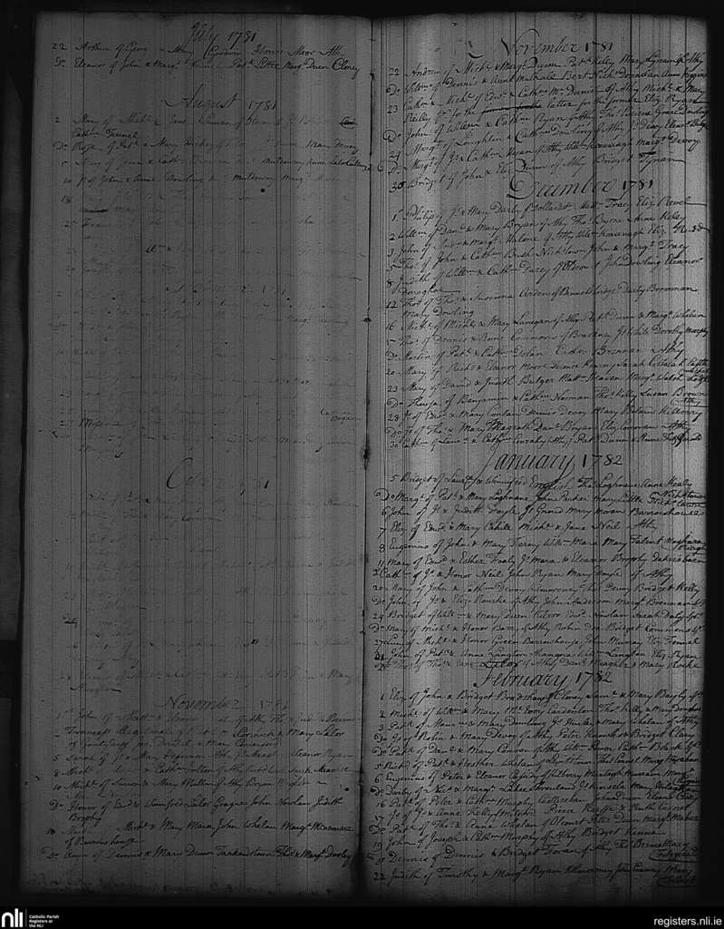 Athy; County of Kildare, Laois; Archdiocese of Dublin. Baptisms, July 1781 to Feb. 1782