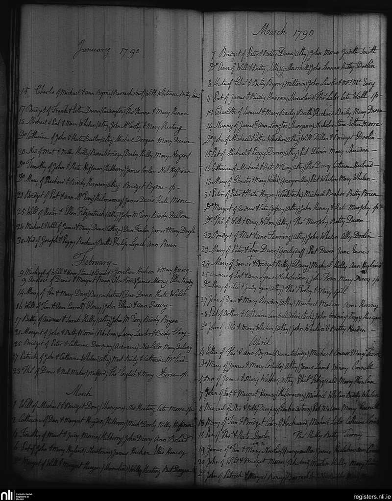 Athy; County of Kildare, Laois; Archdiocese of Dublin. Baptisms, Jan. 1790 to Apr. 1790