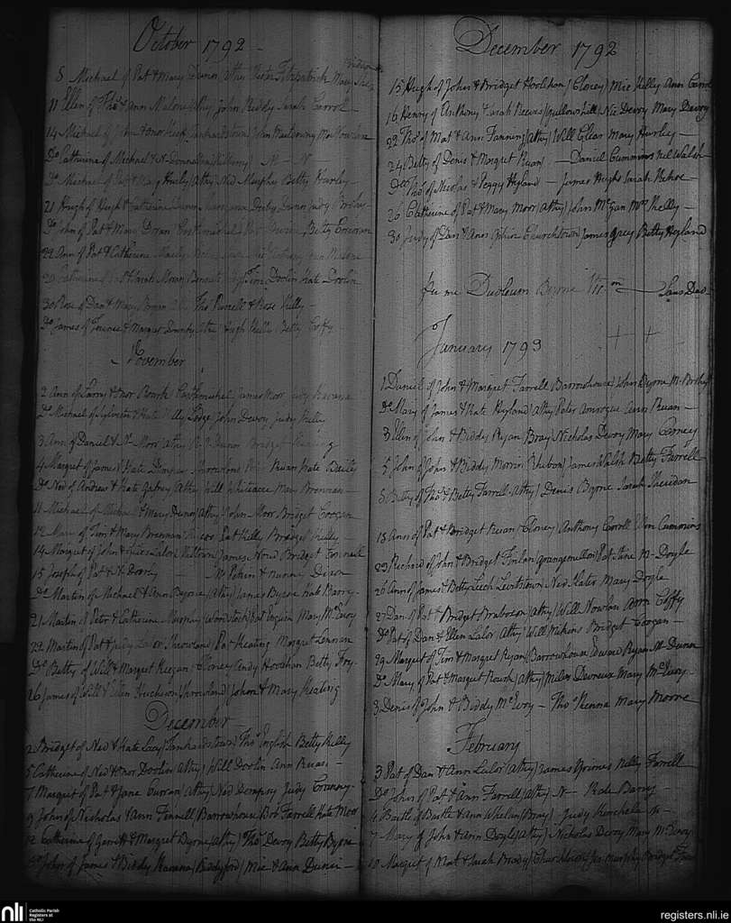Athy; County of Kildare, Laois; Archdiocese of Dublin. Baptisms, Oct. 1792 to Feb. 1793