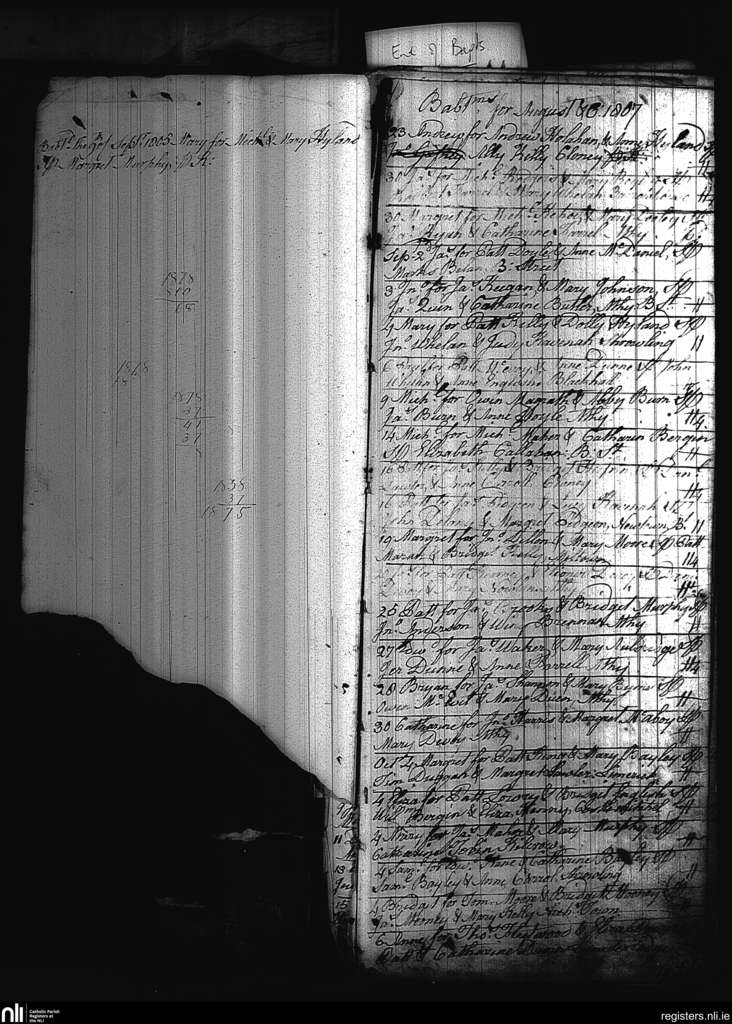 Athy; County of Kildare, Laois; Archdiocese of Dublin. Baptisms, Sep. 1805 to Oct. 1807