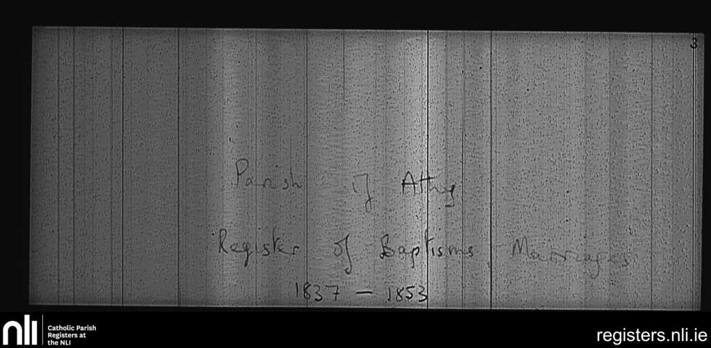 Athy; County of Laois, Kildare; Archdiocese of Dublin. Baptisms, Marriages