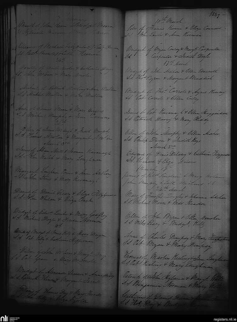 Athy; County of Laois, Kildare; Archdiocese of Dublin. Baptisms, Feb. 1839 to Mar. 1839