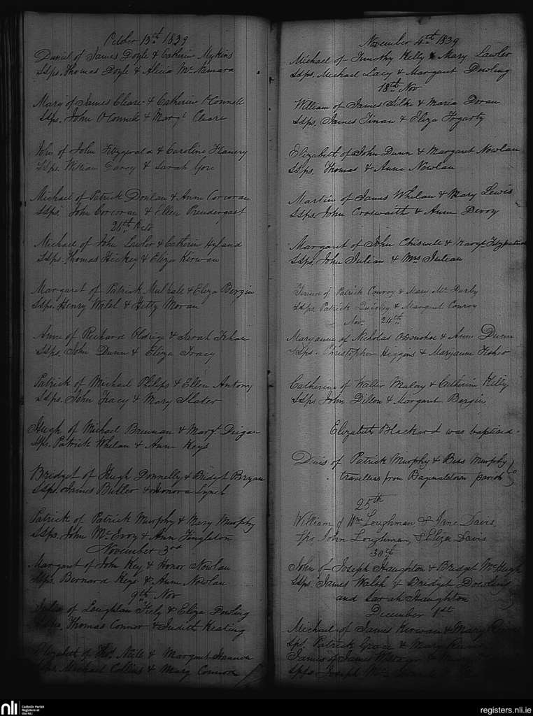 Athy; County of Laois, Kildare; Archdiocese of Dublin. Baptisms, Oct. 1839 to Dec. 1839