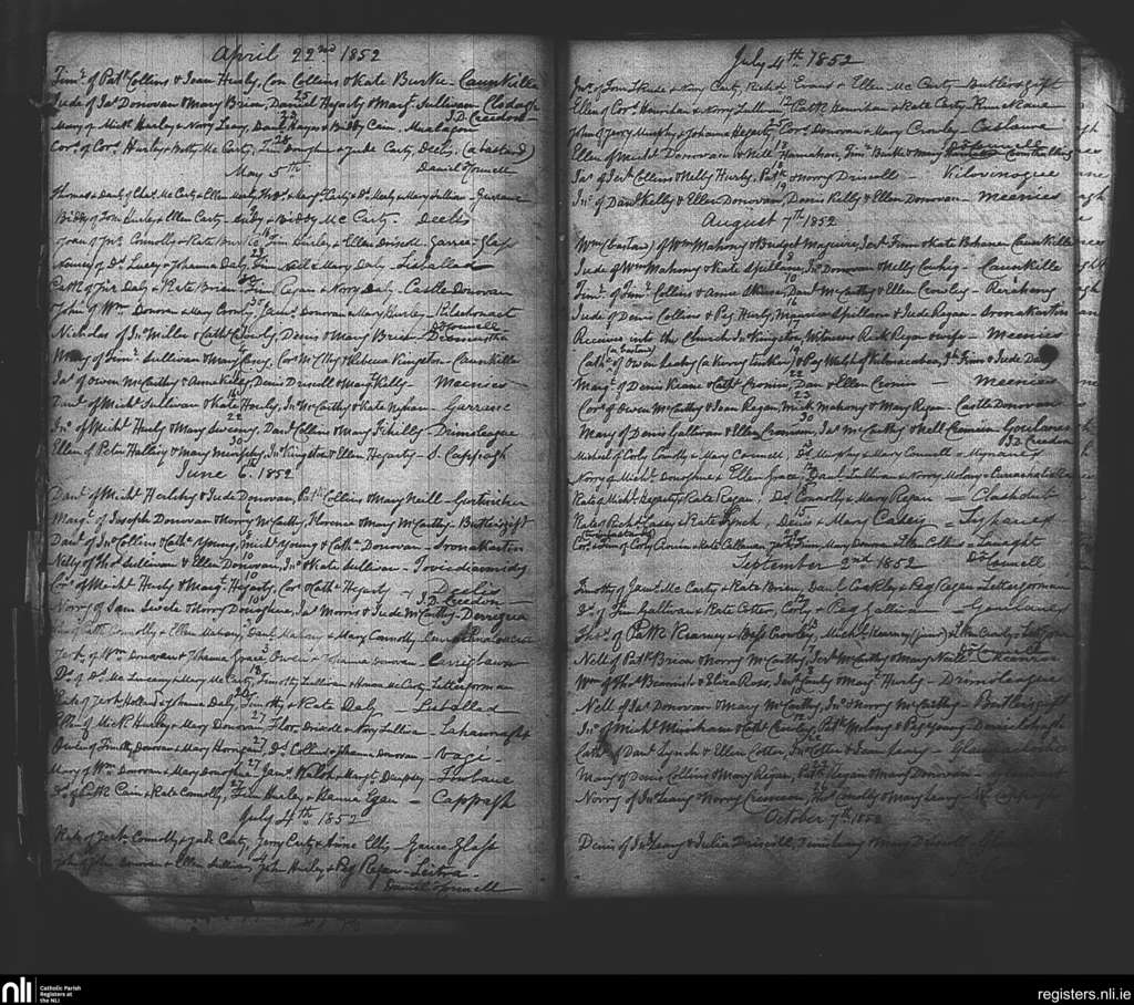 Drimoleague; County of Cork; Diocese of Cork and Ross. Baptisms, Apr. 1852 to Oct. 1852