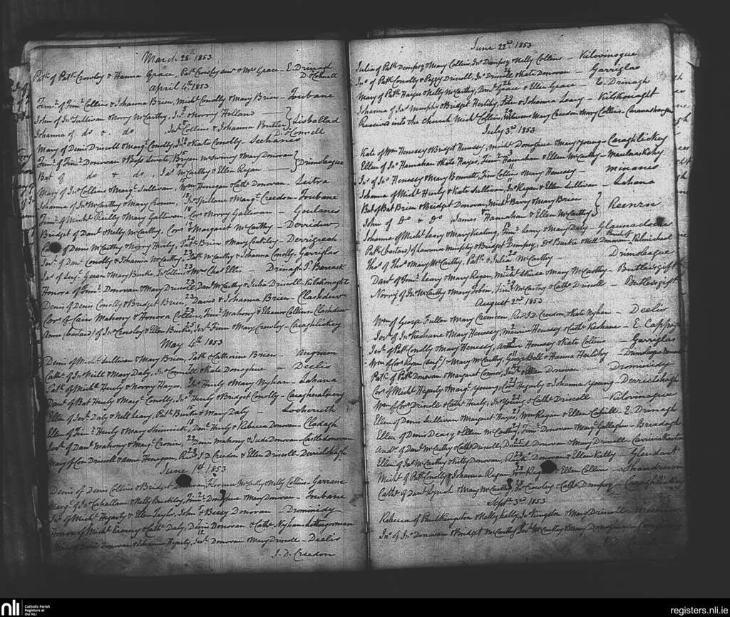 Drimoleague; County of Cork; Diocese of Cork and Ross. Baptisms, Mar. 1853 to Sep. 1853