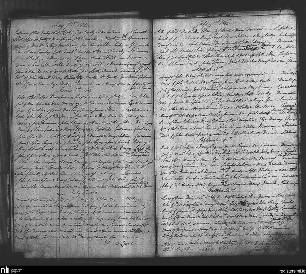 Drimoleague; County of Cork; Diocese of Cork and Ross. Baptisms, May 1862 to Oct. 1862