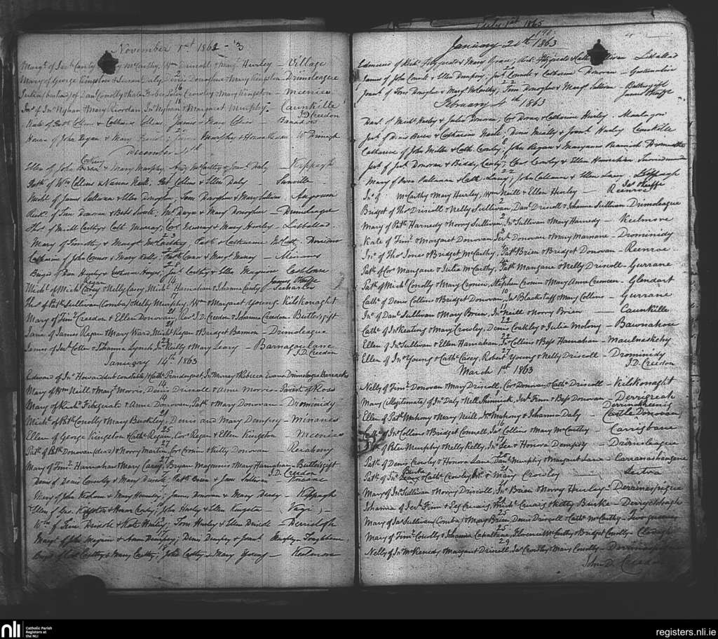 Drimoleague; County of Cork; Diocese of Cork and Ross. Baptisms, Nov. 1862 to Mar. 1863