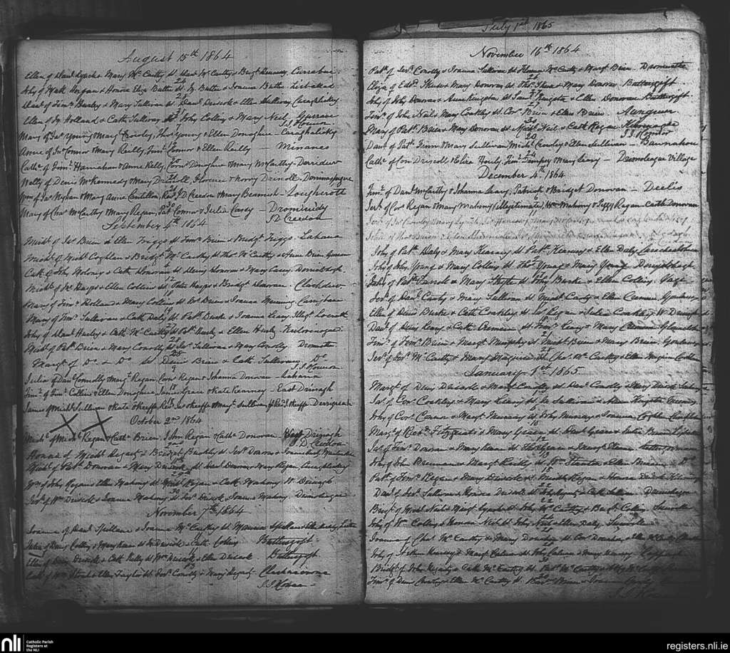 Drimoleague; County of Cork; Diocese of Cork and Ross. Baptisms, Aug. 1864 to Jan. 1865