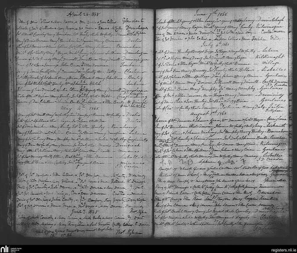 Drimoleague; County of Cork; Diocese of Cork and Ross. Baptisms, Apr. 1868 to Sep. 1868