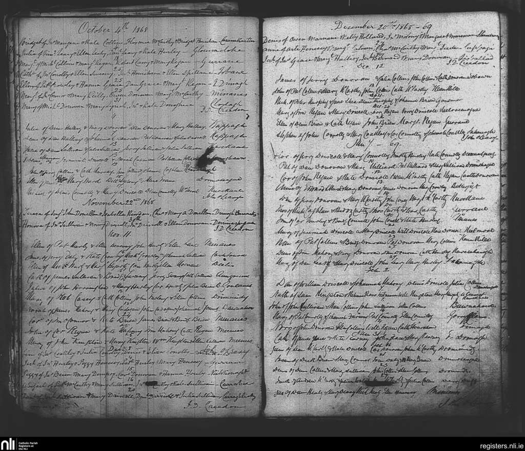 Drimoleague; County of Cork; Diocese of Cork and Ross. Baptisms, Oct. 1868 to Feb. 1869