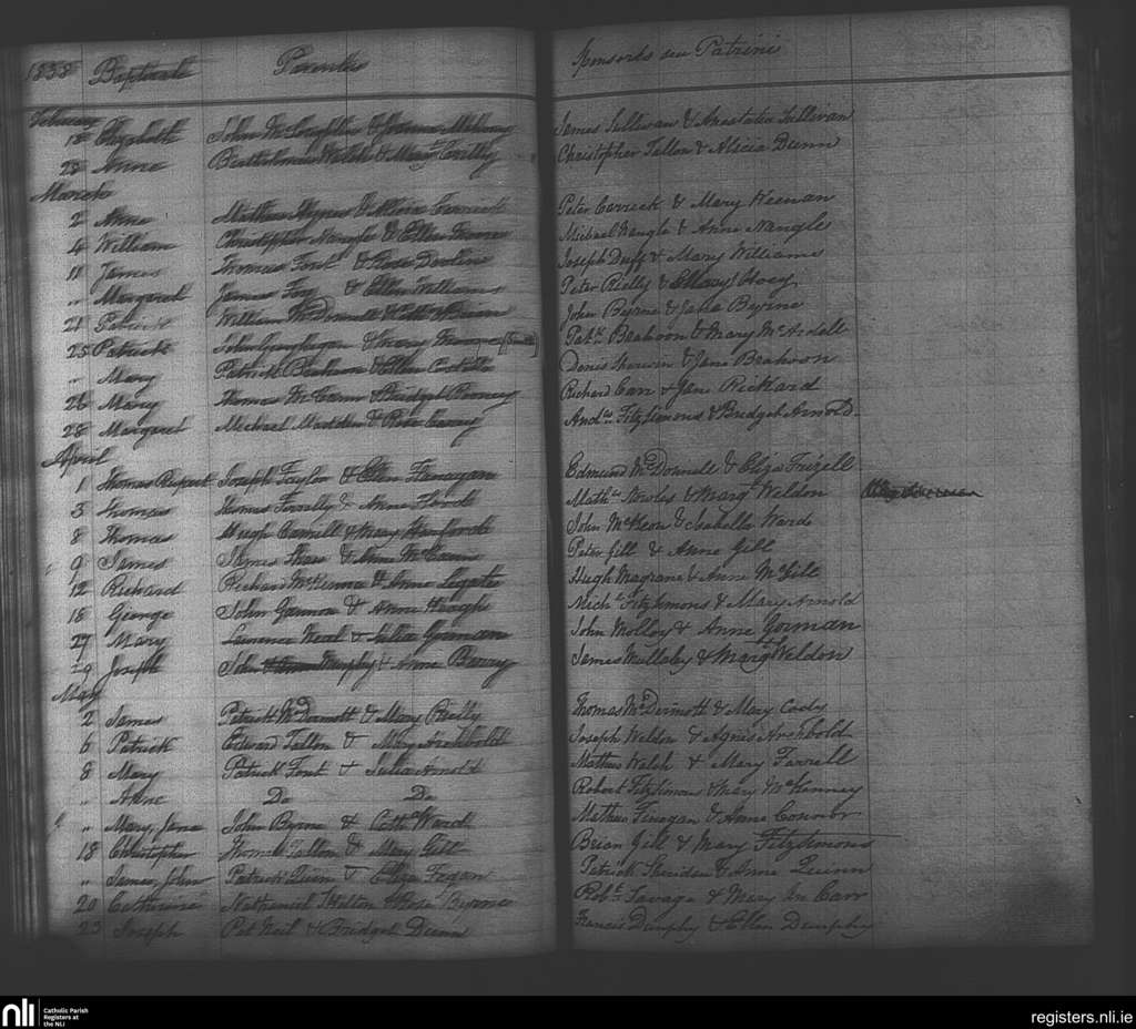 Howth; County of Dublin; Archdiocese of Dublin. Marriages, Jan. 1834 to Sep. 1834