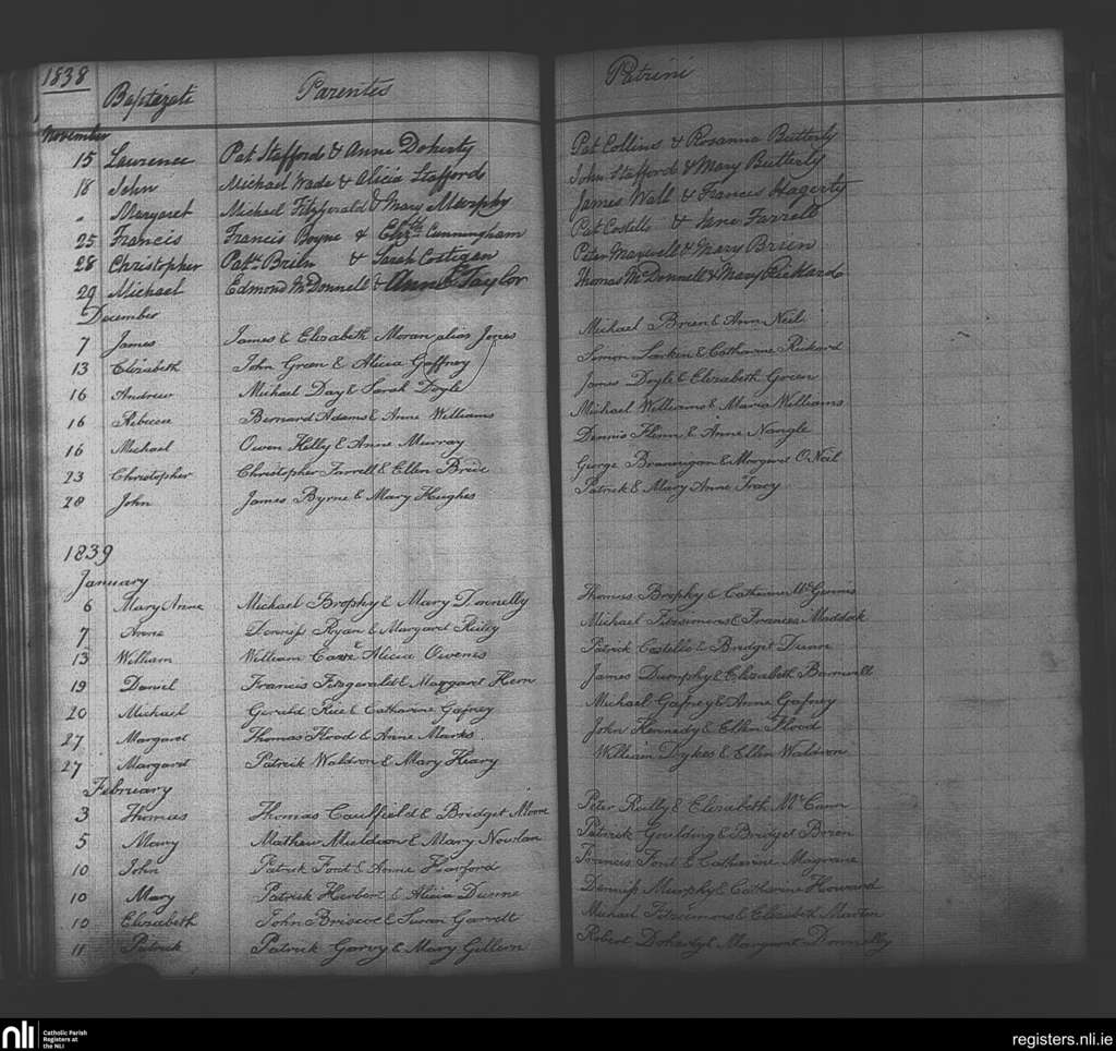 Howth; County of Dublin; Archdiocese of Dublin. Baptisms, Nov. 1853 to Dec. 1853