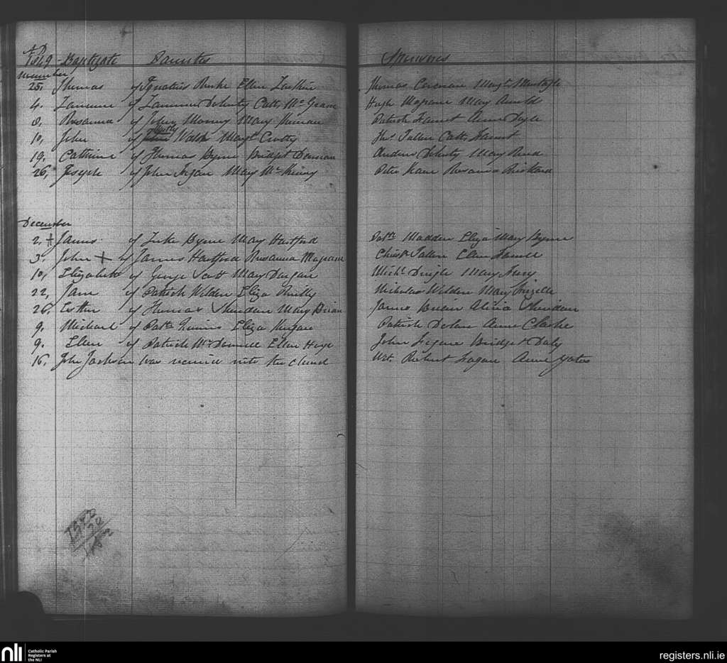 Howth; County of Dublin; Archdiocese of Dublin. Baptisms, Jan. 1843 to May 1843