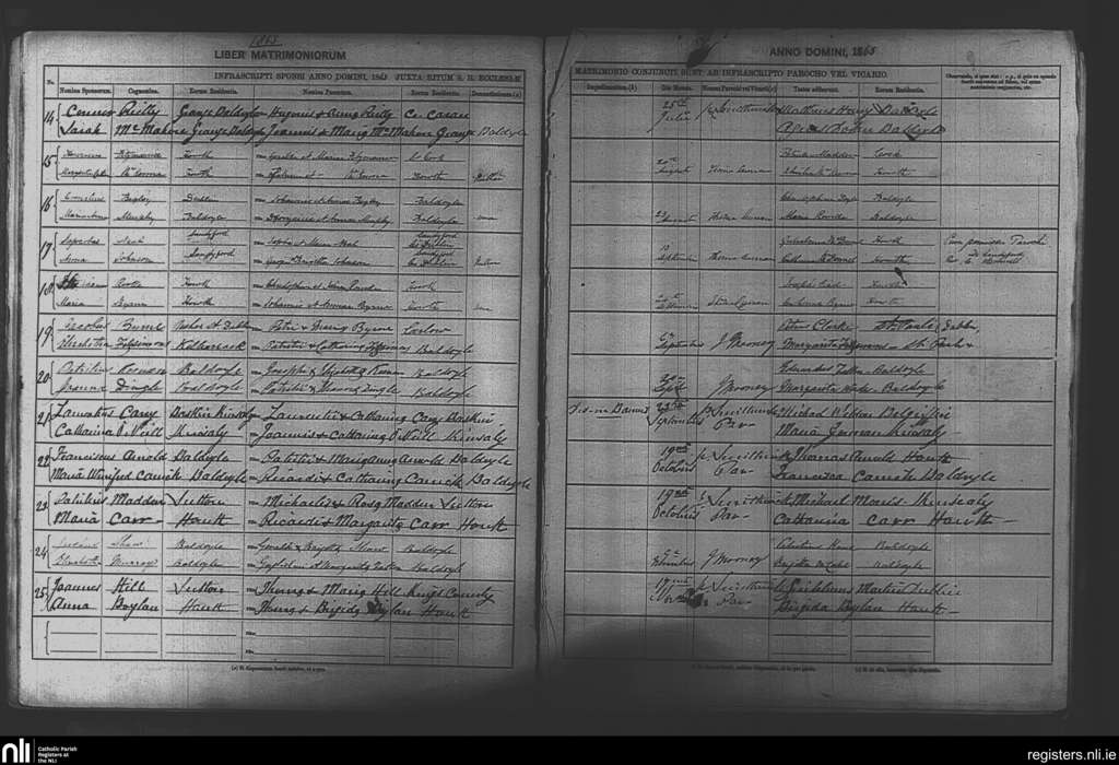 Howth; County of Dublin; Archdiocese of Dublin. Marriages, Feb. 1874 to Oct. 1874