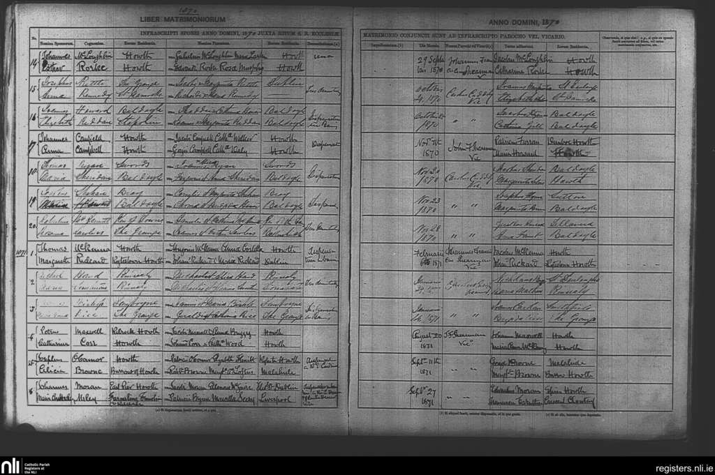 Howth; County of Dublin; Archdiocese of Dublin. Marriages, Jan. 1867 to June 1867