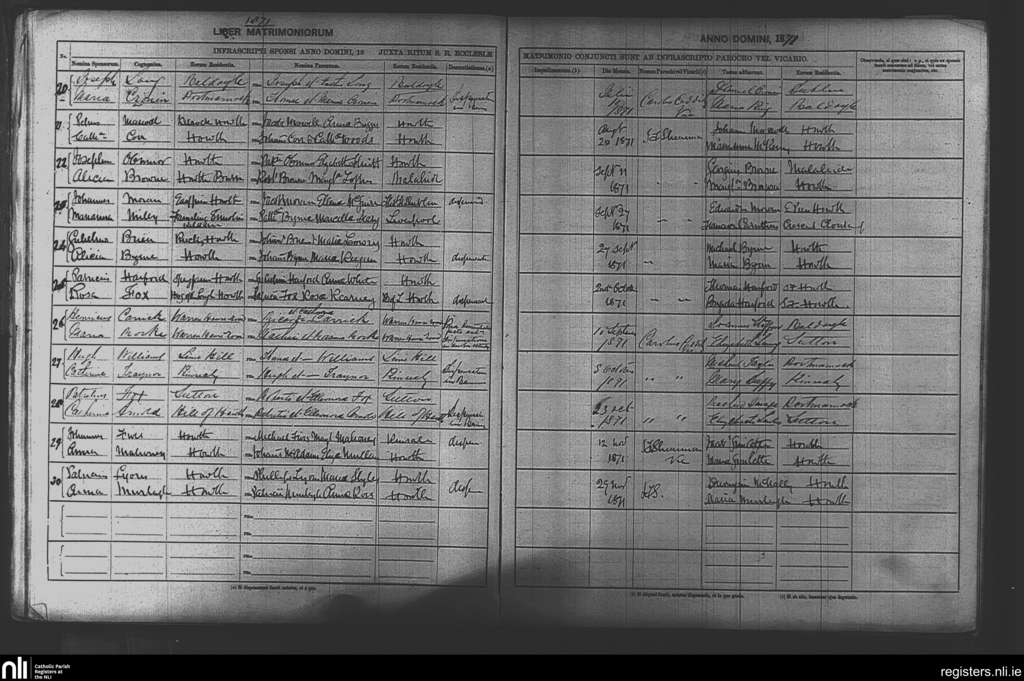 Howth; County of Dublin; Archdiocese of Dublin. Marriages, Feb. 1866 to Sep. 1866