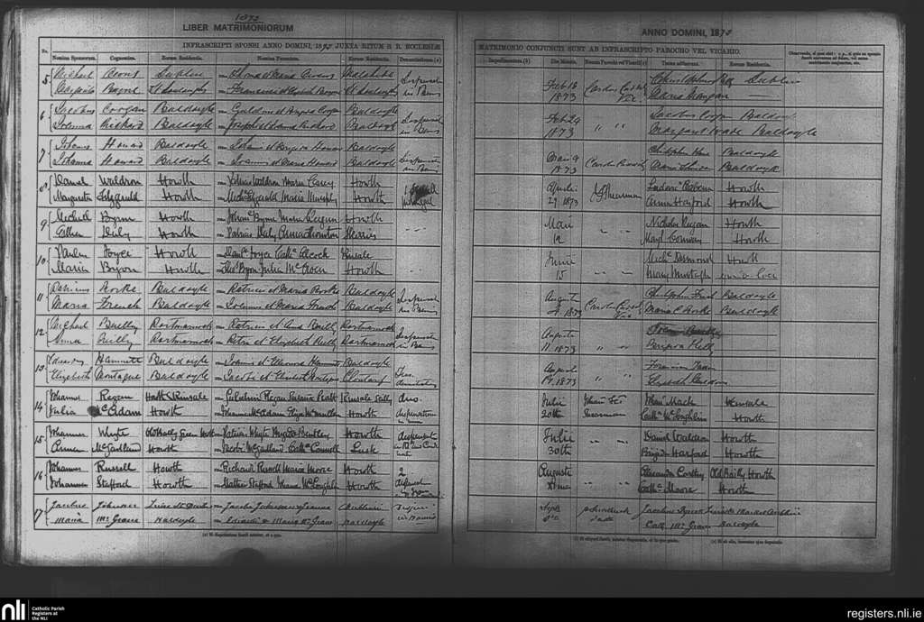 Howth; County of Dublin; Archdiocese of Dublin. Marriages, Feb. 1865 to Nov. 1865