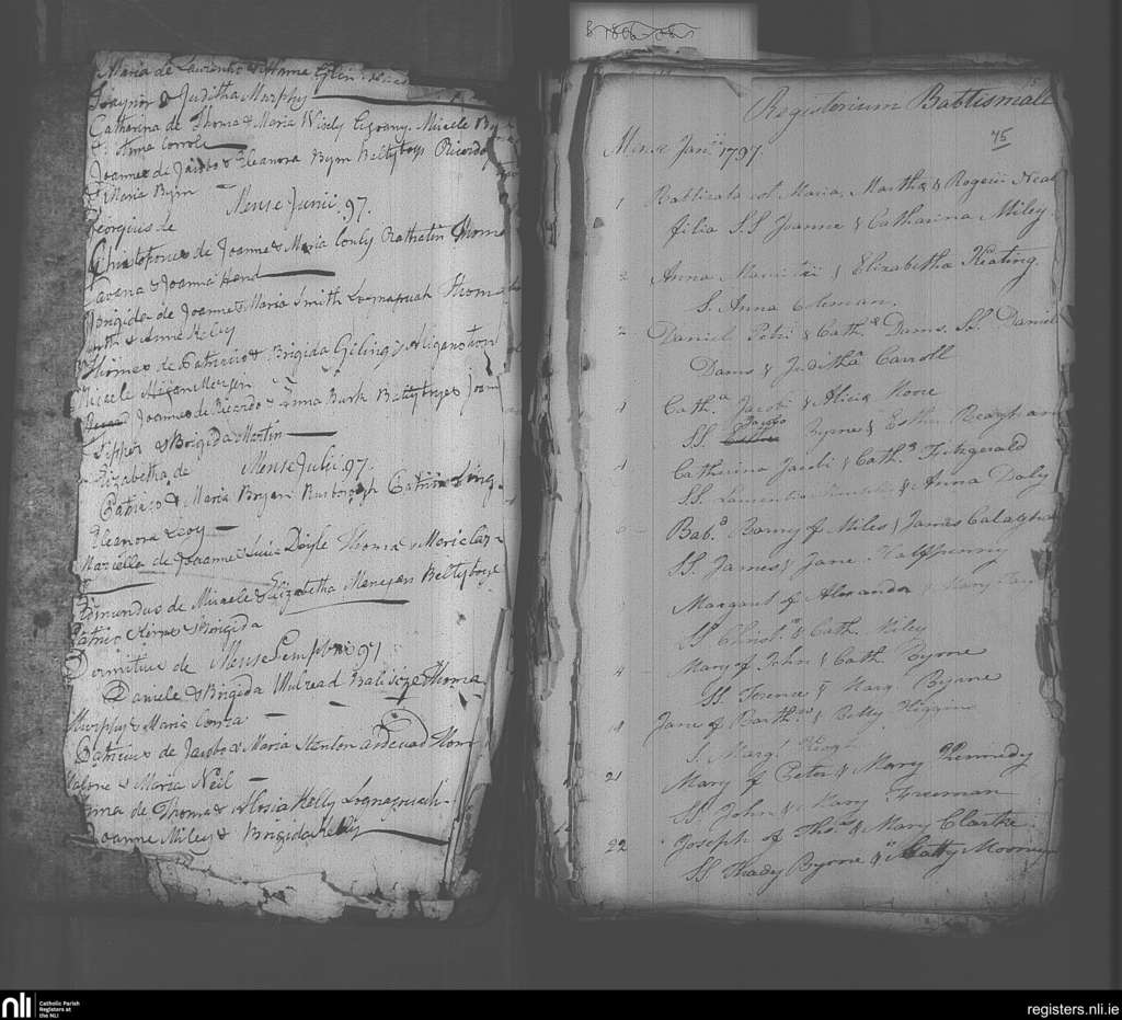 Ballymore Eustace; County of Wicklow, Kildare; Archdiocese of Dublin. Baptisms, Jan. 1797 to Sep. 1797