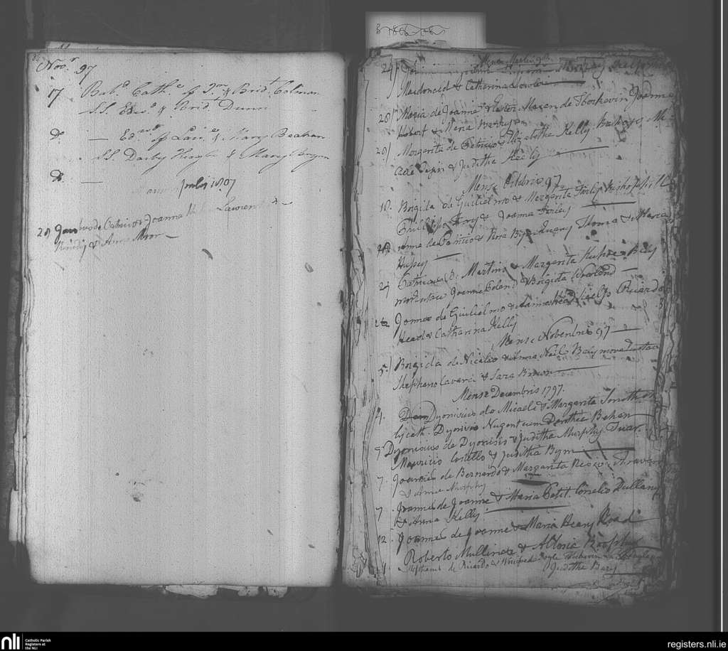 Ballymore Eustace; County of Wicklow, Kildare; Archdiocese of Dublin. Baptisms, Sep. 1797 to July 1807