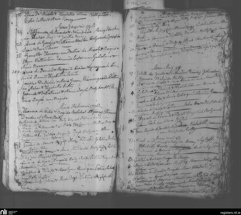 Ballymore Eustace; County of Wicklow, Kildare; Archdiocese of Dublin. Baptisms, Dec. 1797 to June 1798