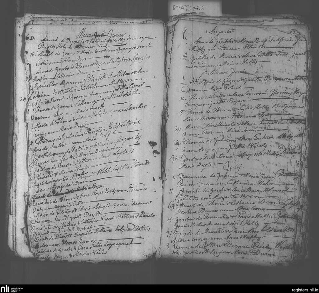 Ballymore Eustace; County of Wicklow, Kildare; Archdiocese of Dublin. Baptisms, June 1798 to Aug. 1798