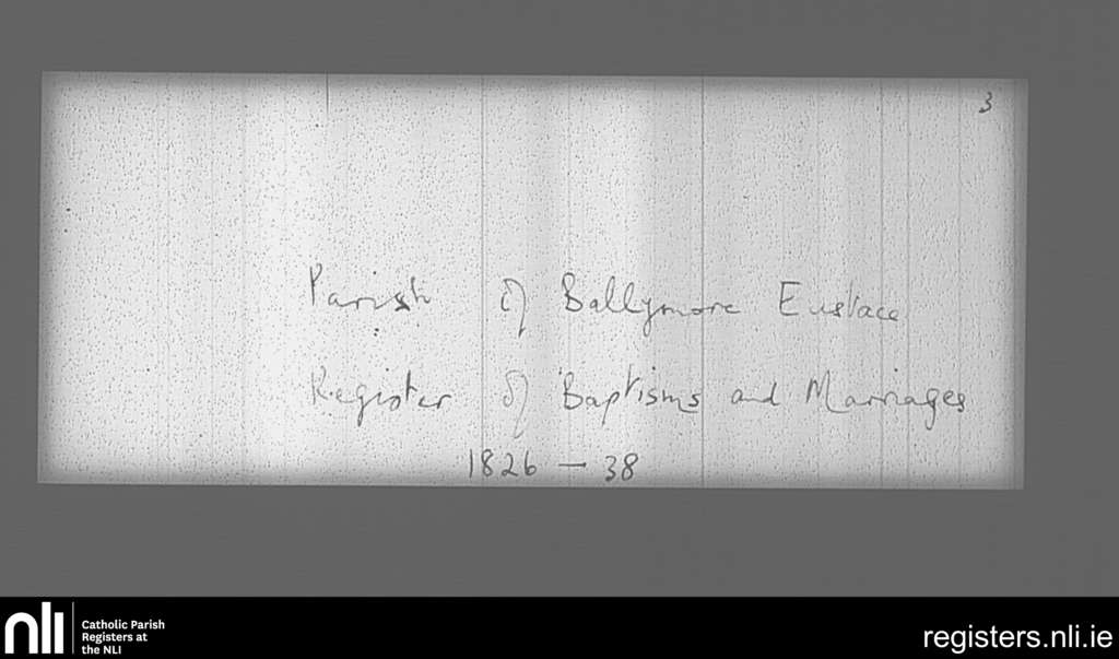 Ballymore Eustace; County of Wicklow, Kildare; Archdiocese of Dublin. Baptisms, Marriages