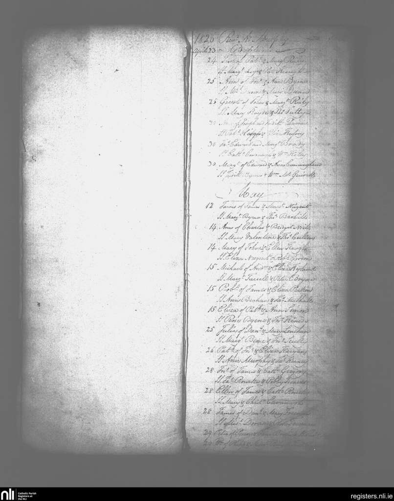 Ballymore Eustace; County of Wicklow, Kildare; Archdiocese of Dublin. Baptisms, Apr. 1826 to May 1826