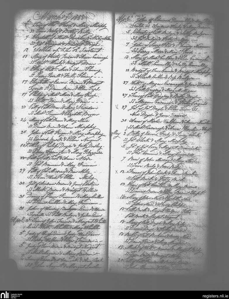 Ballymore Eustace; County of Wicklow, Kildare; Archdiocese of Dublin. Baptisms, Mar. 1828 to May 1828