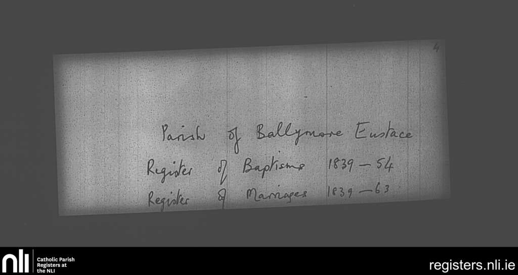 Ballymore Eustace; County of Wicklow, Kildare; Archdiocese of Dublin. Baptisms, Marriages