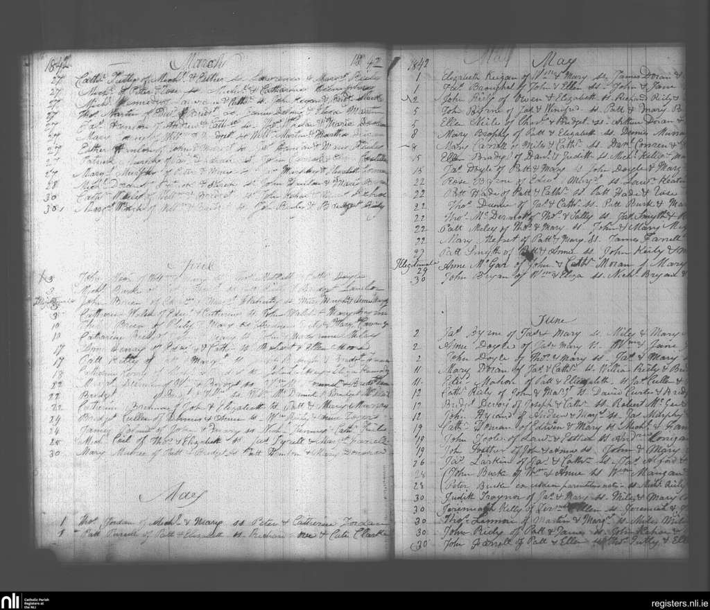 Ballymore Eustace; County of Wicklow, Kildare; Archdiocese of Dublin. Baptisms, Mar. 1842 to June 1842