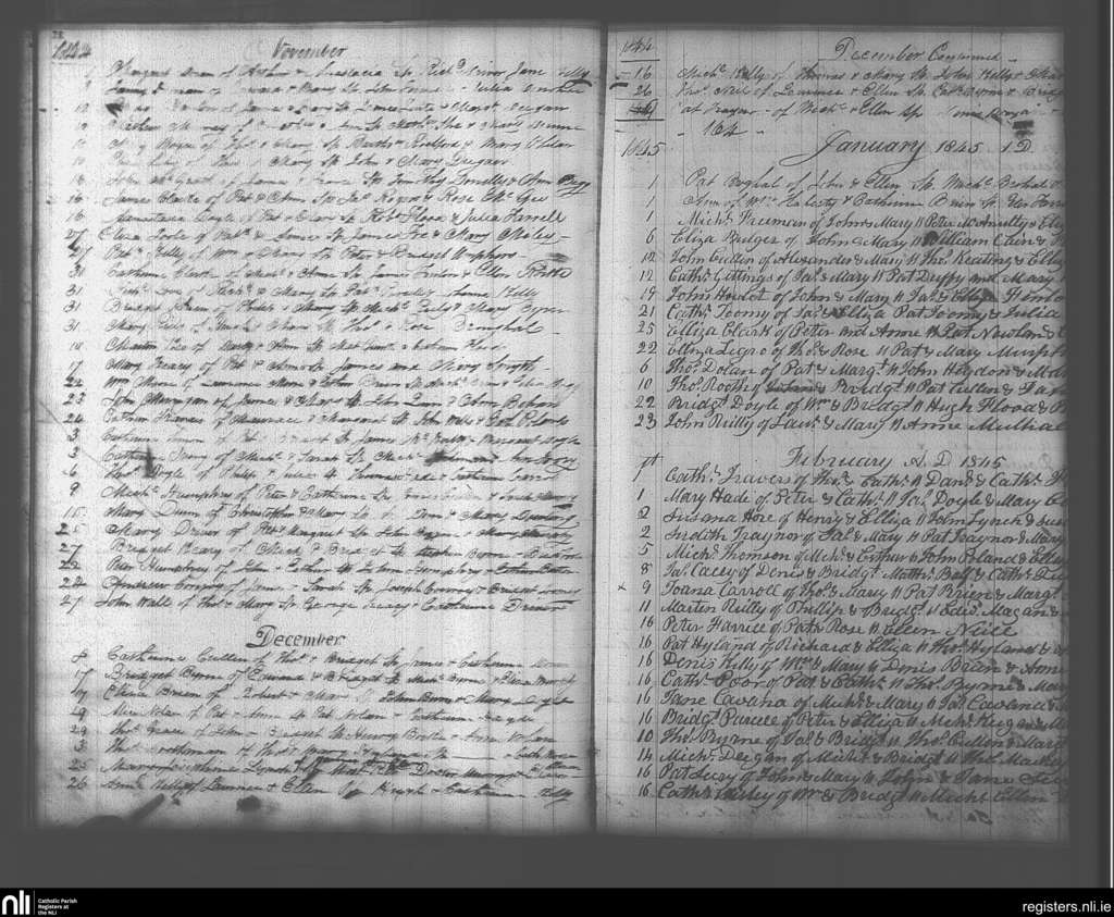 Ballymore Eustace; County of Wicklow, Kildare; Archdiocese of Dublin. Baptisms, Nov. 1844 to Feb. 1845