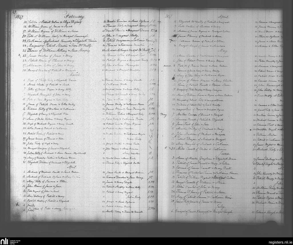 Ballymore Eustace; County of Wicklow, Kildare; Archdiocese of Dublin. Baptisms, Feb. 1847 to July 1847