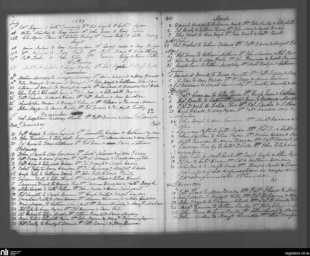 Ballymore Eustace; County of Wicklow, Kildare; Archdiocese of Dublin. Marriages, July 1839 to Jan. 1841