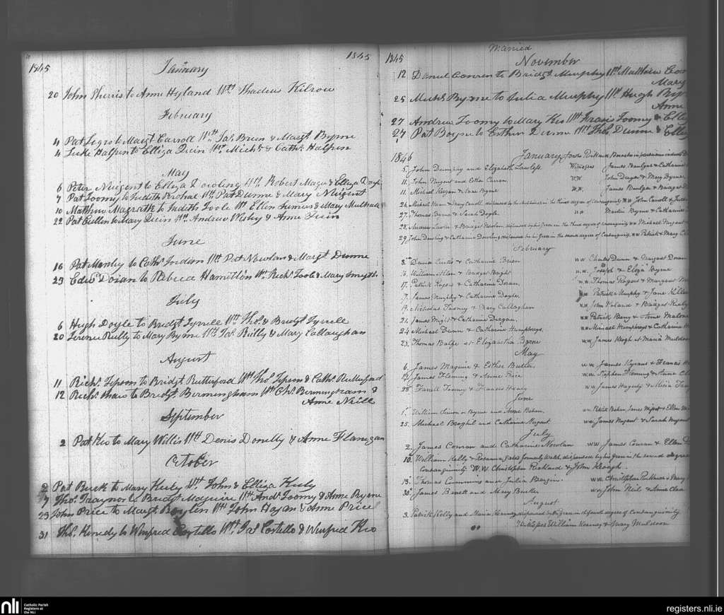 Ballymore Eustace; County of Wicklow, Kildare; Archdiocese of Dublin. Marriages, Jan. 1845 to Aug. 1846