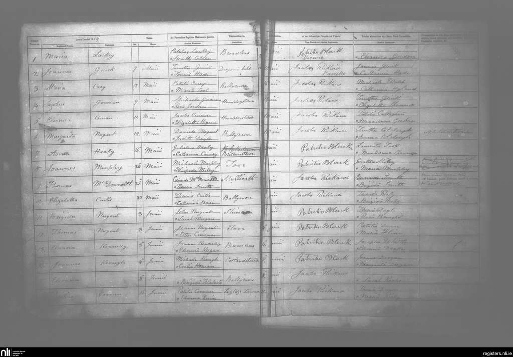 Ballymore Eustace; County of Kildare, Wicklow; Archdiocese of Dublin. Baptisms, May 1854 to June 1854