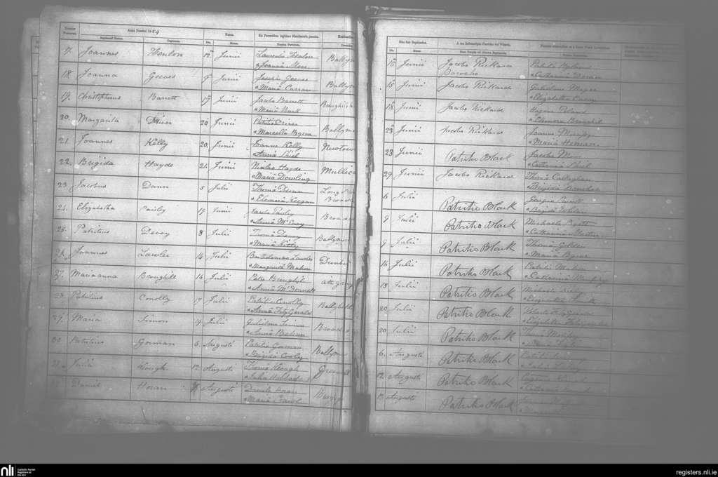 Ballymore Eustace; County of Kildare, Wicklow; Archdiocese of Dublin. Baptisms, June 1854 to Aug. 1854