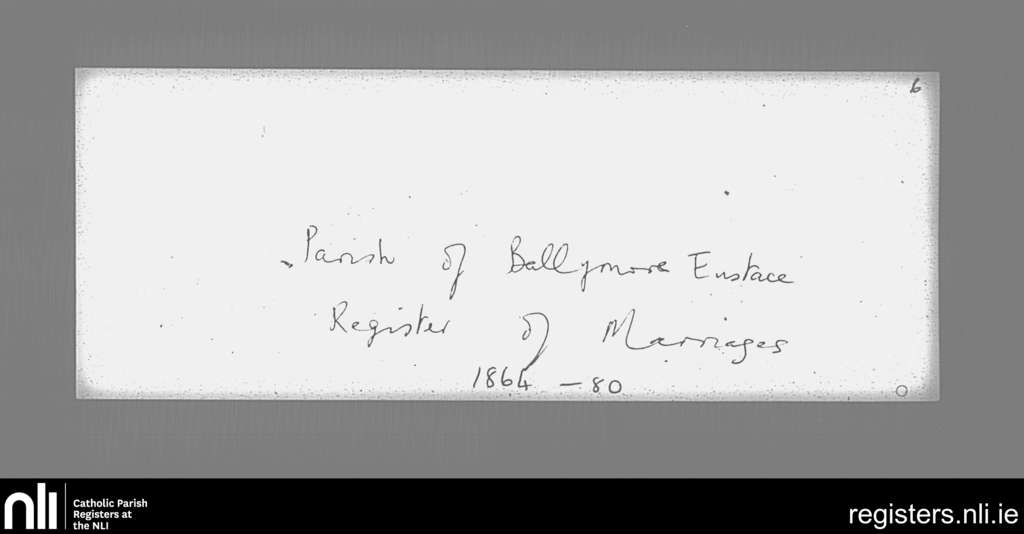 Ballymore Eustace; County of Kildare, Wicklow; Archdiocese of Dublin. Marriages