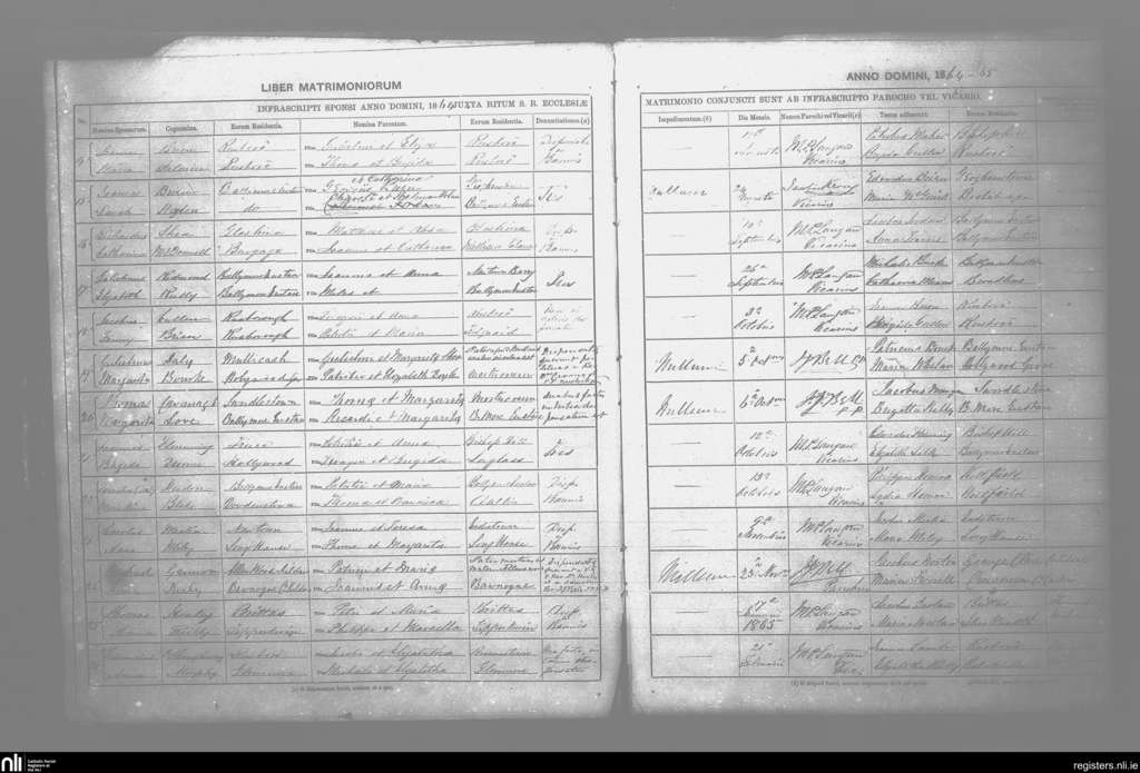 Ballymore Eustace; County of Kildare, Wicklow; Archdiocese of Dublin. Marriages, Aug. 1864 to Feb. 1865