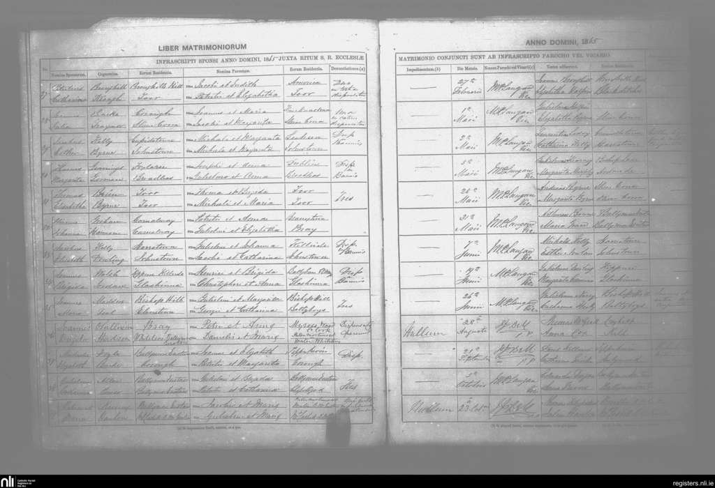 Ballymore Eustace; County of Kildare, Wicklow; Archdiocese of Dublin. Marriages, Feb. 1865 to Oct. 1865