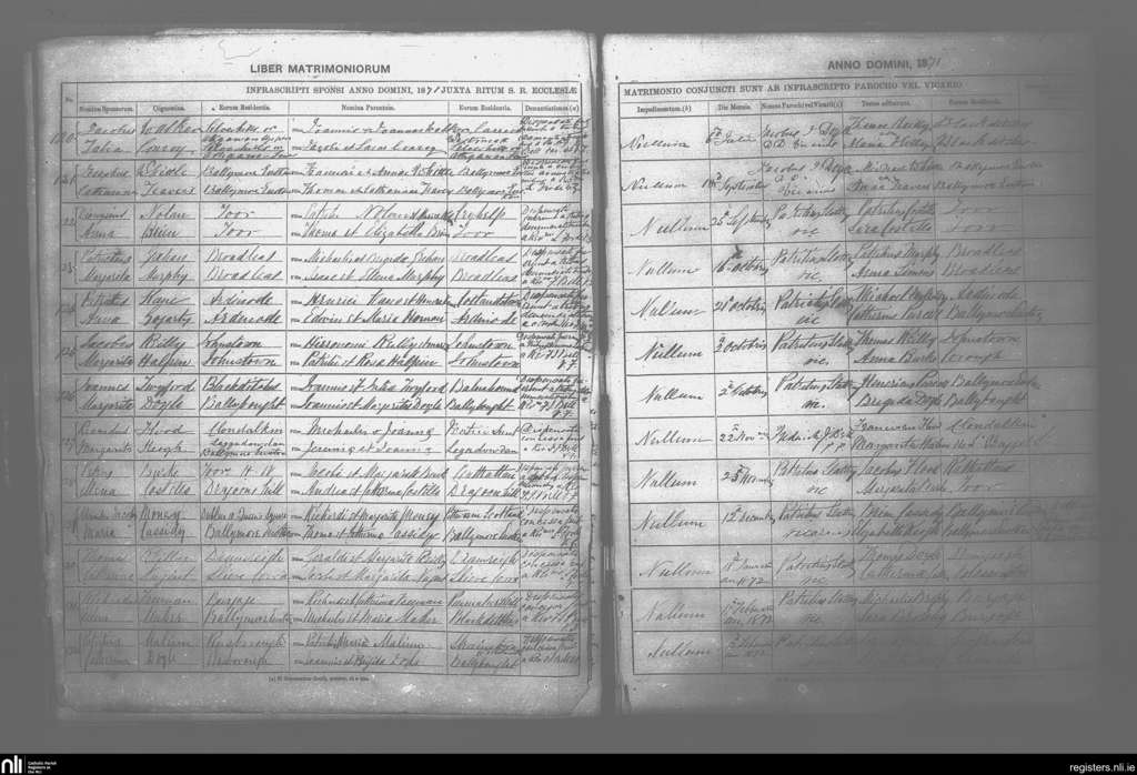 Ballymore Eustace; County of Kildare, Wicklow; Archdiocese of Dublin. Marriages, July 1871 to Feb. 1872